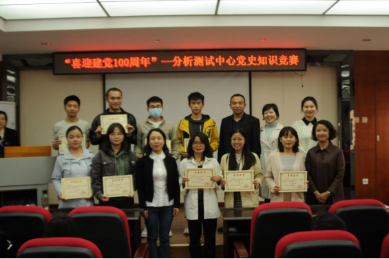 为庆祝建党100周年,更加深入学习和了解党史,引导和激发青年不断增强开展好党史学习教育的思想自觉、政治自觉、行动自觉,4月1日,2138cc太阳集团官网在333会议室举行“喜迎建党100周年党史知识竞赛”。竞赛由中心研究生分会牵头组织,全体研究生党员参加。党总支副书记吴兰同志、生医材料研究生党支部书记邹琴同志、分析环境研究生党支部书记吴鹏同志、研究生辅导员李沅爰同志以及团支部指导老师张亮同志到场指导。本次知识竞赛涵盖了《中国共产党简史》、《中国共产党章程》和《中国近代史纲要》等内容,题目丰富、覆盖面宽,全程答题共计85人次,整个竞赛过程气氛活跃、热烈。经过淘汰赛和复赛,9名同学在此次竞赛中获奖。