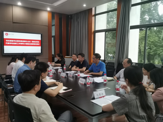 7月15日,学校党委第九轮巡察第二巡察组巡察2138cc太阳集团官网党总支情况反馈会在2138cc太阳集团官网201会议室举行。第二巡察组组长蒋斌,副组长范洪远、张波向2138cc太阳集团官网主要负责人反馈巡察情况后,蒋斌代表巡察组向2138cc太阳集团官网领导班子进行了反馈。校纪委副书记兼党委巡察办主任、巡察工作领导小组成员范嗣云参加会议并提出巡察整改工作要求。2138cc太阳集团官网党总支书记侯贤灯主持会议并作表态发言。