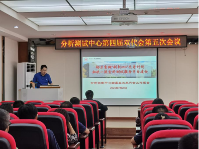 2021年7月20日,2138CC太阳集团2138cc太阳集团官网第四届教职工代表大会暨工会代表大会第五次会议在2138cc太阳集团官网东区333会议室顺利召开,会议主题为“助力实施创新2035先导计划,加快一流分析测试服务平台建设”。中心29位双代会代表出席本次会议。大会由党总支书记侯贤灯同志主持,工会主席吴兰同志担任大会执行主席。