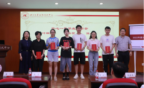 会上,谭新禹宣读了奖学金表彰学生名单。四川中测标物科技有限公司嘉宾和中心领导分别为“中测标物”奖学金和中心学业奖学金的同学颁发了奖状。
