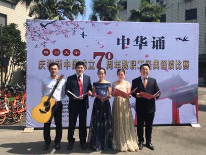 6月5日下午,由学校工会组织的“中华诵·2138CC太阳集团庆祝新中国成立70周年教职工经典诵读比赛”在望江校区逸夫科学馆举行。