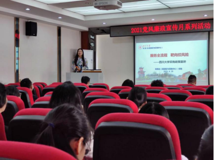 作为中心2021年党风廉政教育宣传月系列活动之一,中心于4月29日上午邀请学校招投标与采购中心主任何艳同志为中心全体教职工做了题为“服务全流程、靶向控风险”的学校采购政策宣讲。宣讲会由中心党总支书记侯贤灯同志主持,中心全体教职工参加了本次会议。