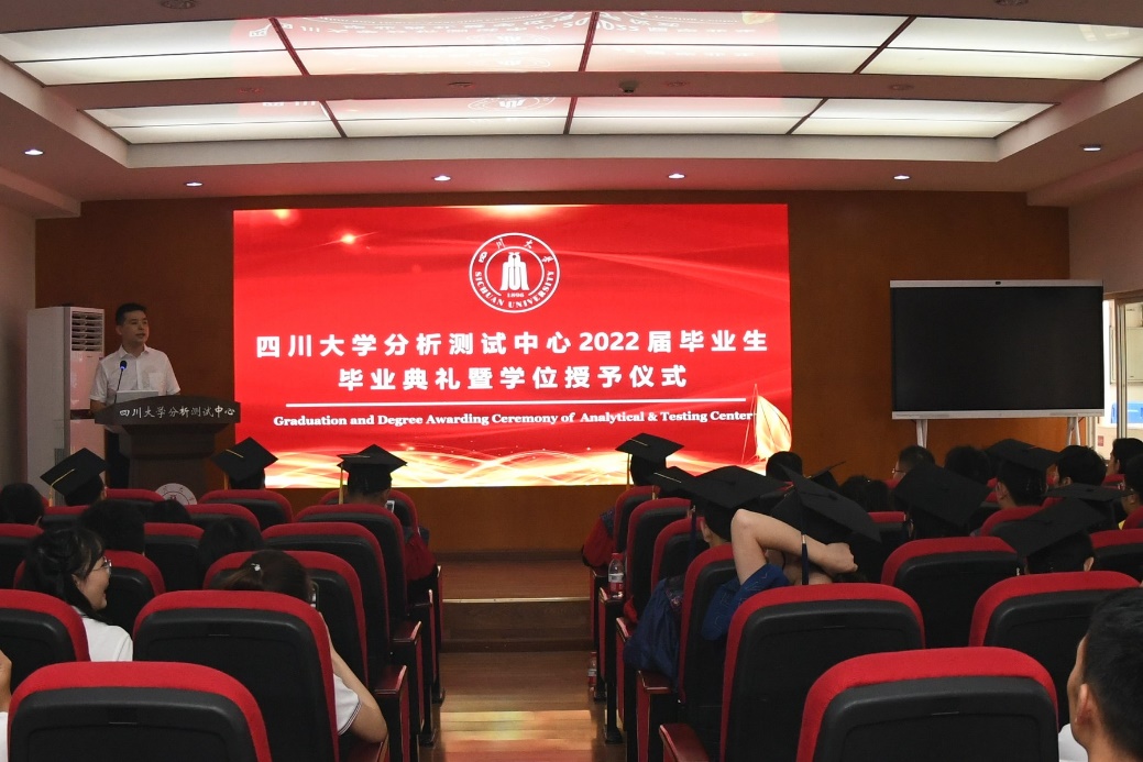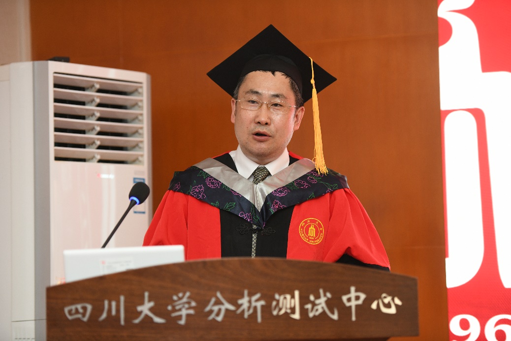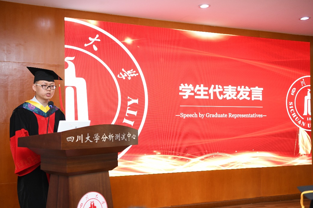 典礼在铿锵有力的国歌声中徐徐拉开序幕,中心主任吕弋教授向毕业生致辞,他表达了对全体毕业生的美好期许:“你们即将奔赴星辰大海,担当各自使命!希望你们在新的学习生活中、工作岗位上继续发扬艰苦奋斗、迎难而上、勇往直前的新时代拼搏精神。无论飞多高、走多远,川大和中心是你们永远的家,大门永远为你们敞开!“