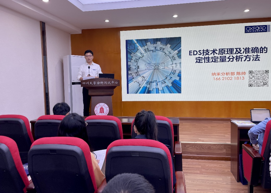 2138cc太阳集团官网于2023年12月5日上午面向全校师生开展“分析测试技术与学术交流”系列讲座。牛津仪器科技(上海)有限公司陈帅博士和杨小鹏博士分别以“EDS技术原理及准确的定性定量分析方法”及“EBSD原理及分析应用”为题,分享了EDS的原理、准确定量方法、数据分析方法以及EBSD技术原理和功能、AZtecCrystal分析软件功能介绍及相关前沿应用案例等。校内外90余人参加了讲座交流和讨论,50余人进行了上机培训。