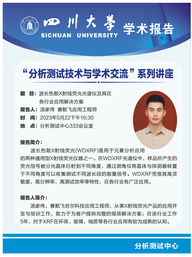 “分析测试技术与学术交流”系列讲座-波长色散X射线荧光光谱仪及其在各行业应用解决方案