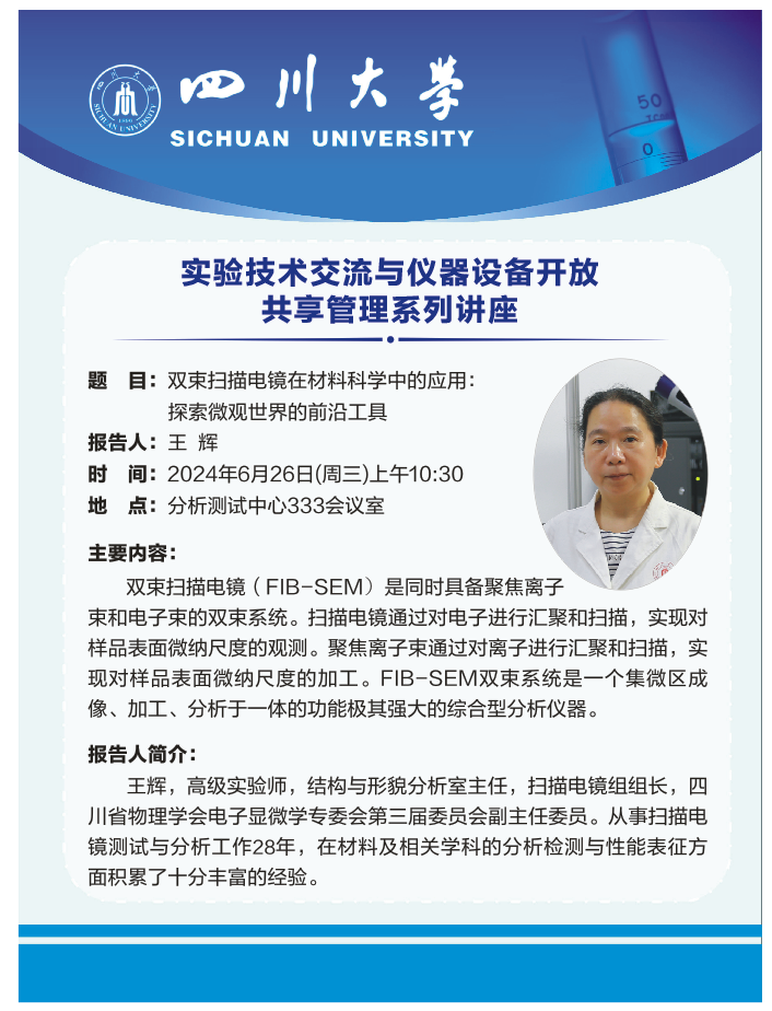 实验技术交流与仪器设备开放共享管理系列讲座——双束扫描电镜在材料科学中的应用:探索微观世界的前沿工具
